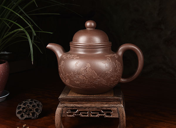 葛岳純父子皆擅長花貨的制作,其中家族代表作九龍至尊壺是由葛超美設計,其父親葛岳純制作完成,遠看壺型整體氣韻流暢,近看做工精美無暇,是父子合作的經典之作,現已注冊外觀專利和終身版權。后葛超美在其父親傳統技法的基礎上,吸收其藝術菁華,創造革新,制作出更為精致、富有立體感的九龍至尊壺,九龍盤壺戲珠,浮雕云騰致雨,精致于細發,大氣于天地,寓意天降祥瑞,國泰民安。